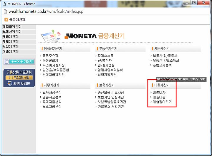 오늘은 할부이자 계산기를 알아보려고 합니다. 실제로 내가 얼마를 빌렸는데 그걸 갚아나가려면 다달이 얼마나 더 내게 되는가를 알아보는 거겠지요. 그래서 요거 간단하게 알아보는 곳은 상당히 많은데요. 제가 좋아하는 곳은 바로 모네타입니다.